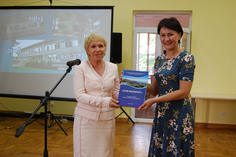 Поздравляя коллектив с юбилейной датой, Валентина Ткачева вручила директору Центральной библиотеки Ульяне Волошкиной книгу-сборник «Сочи выбирает…». Сборник подготовлен специалистами избирательной комиссии совместно с архивным отделом администрации города Сочи в рамках краевого конкурса. Конкурсная работа отмечена Дипломом избирательной комиссии Краснодарского края I степени. Через призму развития избирательной системы СССР, России, Краснодарского края в книге отражены процессы сложной и противоречивой политической жизни страны, особенности организации и проведения избирательных кампаний, исторический выбор избирателей города Сочи за период с 1937 года по 2015 год.