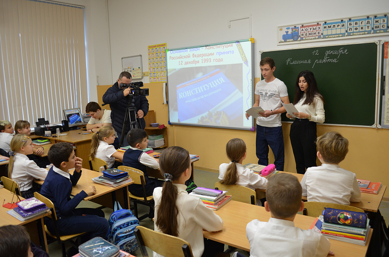 Члены Молодежного общественного совета при муниципальной комиссии, студенты Сочинского государственного университета, Сочинского института РУДН, Университетского экономико-технологического колледжа на открытых уроках гражданственности рассказали школьникам об истории принятия Основного закона страны в 1993 году, об основных его положениях.