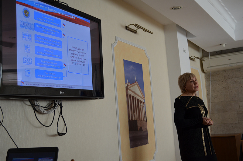Выступления спикеров сопровождались презентационными обзорами, подготовленными сотрудниками учебно-методического кабинета муниципальной избирательной комиссии г. Сочи.