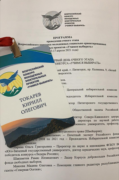 Кирилл Токарев, член Молодежного общественного совета при муниципальной избирательной комиссии, принял участие в финале Всероссийского конкурса «Учимся выбирать». Конкурс проводится Российским фондом свободных выборов при поддержке Центральной избирательной комиссии Российской Федерации.