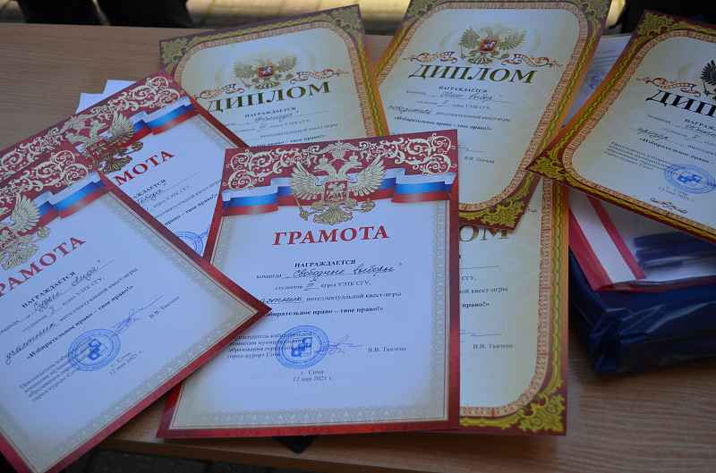 Победители, призеры и участники квест-игры награждены дипломами и грамотами избирательной комиссии муниципального образования город-курорт Сочи.