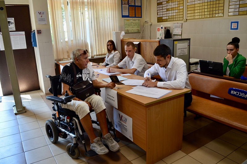 На избирательных участках работают волонтеры. Они оказывают содействие и поддержку избирателям с ограниченными возможностями и пожилым людям.