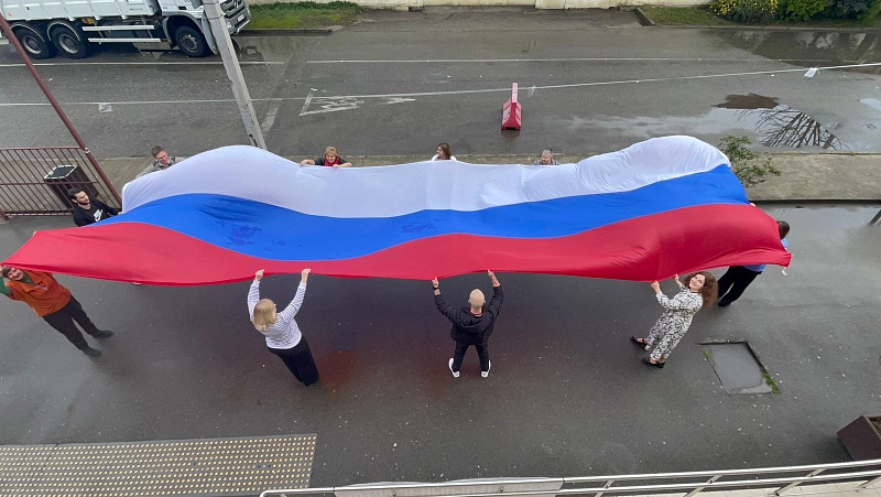 Члены участковой избирательной комиссии № 6537 перед открытием избирательного участка провели торжественную акцию с использованием флага России.