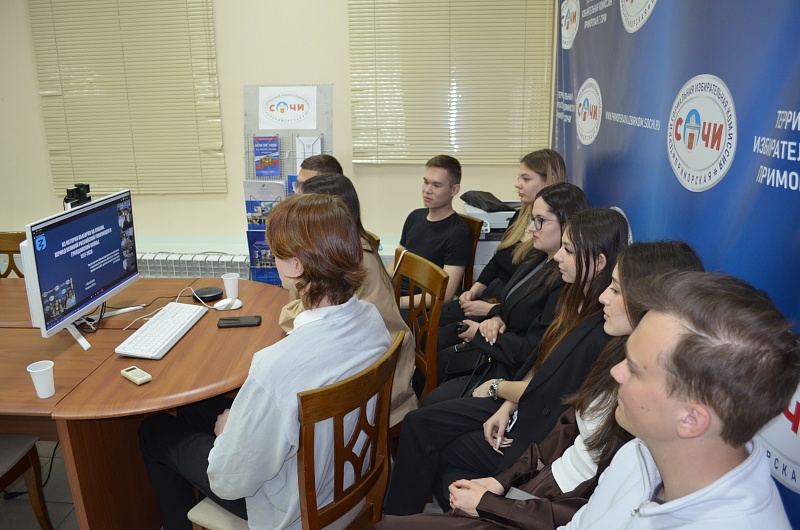 В зале заседаний ТИК Приморская г. Сочи слушателями Молодежной школы стали члены Молодежного общественного совета при территориальной избирательной комиссии Приморская г. Сочи, студенты Сочинского государственного университета.