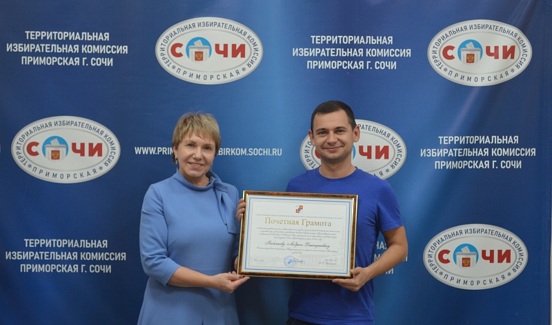 ТИК Приморская г. Сочи стала победителем (1 место) в номинации «Лучшая организация работы по обучению организаторов выборов» в краевом конкурсе среди территориальных избирательных комиссий на лучшую организацию работы в области информационно-разъяснительной деятельности в период проведения выборов в единый день голосования 14 сентября 2025 года, организованном избирательной комиссией Краснодарского края.