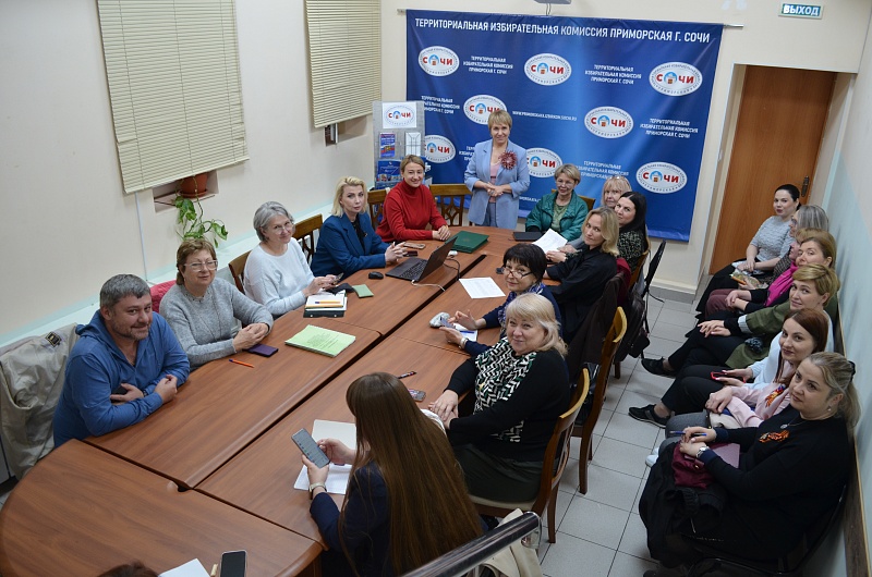 22 апреля в территориальной избирательной комиссии Приморская г. Сочи состоялись обучающие семинары для членов участковых избирательных комиссий. Обучение рассчитано на несколько этапов и проводится малыми группами в учебно-методическом кабинете комиссии.