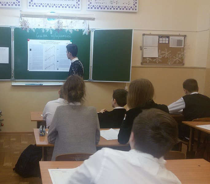 16 января 2018 года в средней общеобразовательной школе состоялось очередное занятие по курсу «Избирательное право и избирательный процесс». В проведении занятия приняла участие председатель территориальной избирательной комиссии Г.П. Польская. Входе занятия рассмотрены основные положения статьи 17 Федерального закона «Об основных гарантиях избирательных прав и права на участие в референдуме граждан Российской Федерации».