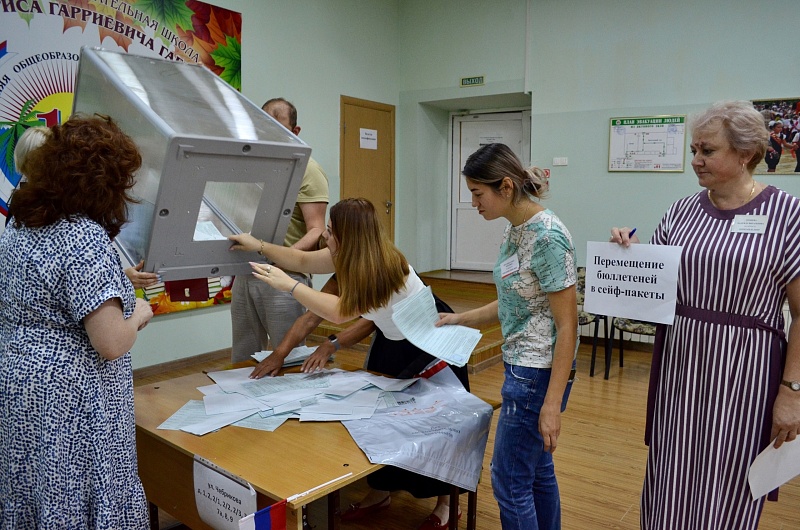 По окончании голосования членами избирательных комиссий все избирательные бюллетени в присутствии наблюдателей и представителей СМИ перемещены из переносных и стационарных ящиков для голосования в сейф-пакеты.