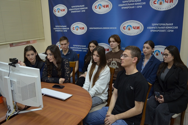 В зале заседаний ТИК Приморская г. Сочи слушателями Молодежной школы стали члены Молодежного общественного совета при территориальной избирательной комиссии Приморская г. Сочи, студенты Сочинского государственного университета.